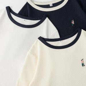 Women Retro Round Neck Color Clashing T-shirt